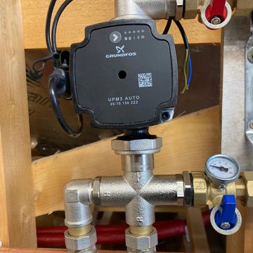Isolation valves with gauges and Grundfos pump set for Heat Pump systems.